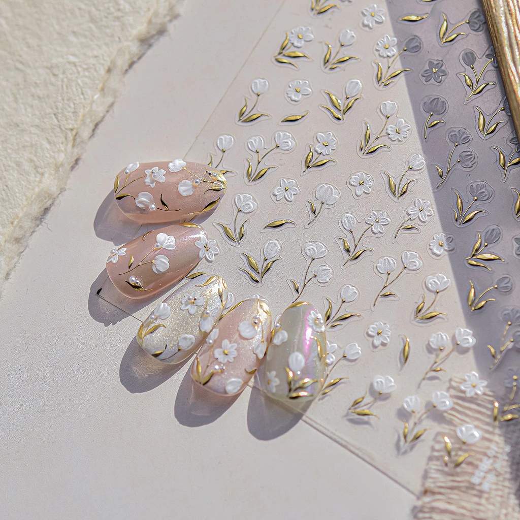 สติ๊กเกอร์ติดตกแต่งเล็บแบบนูน ลายดอกไม้ ขายส่ง 50 แผ่นขึ้นไป