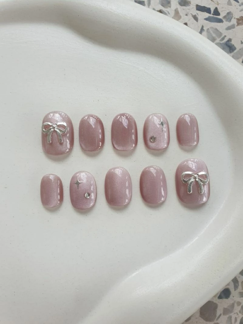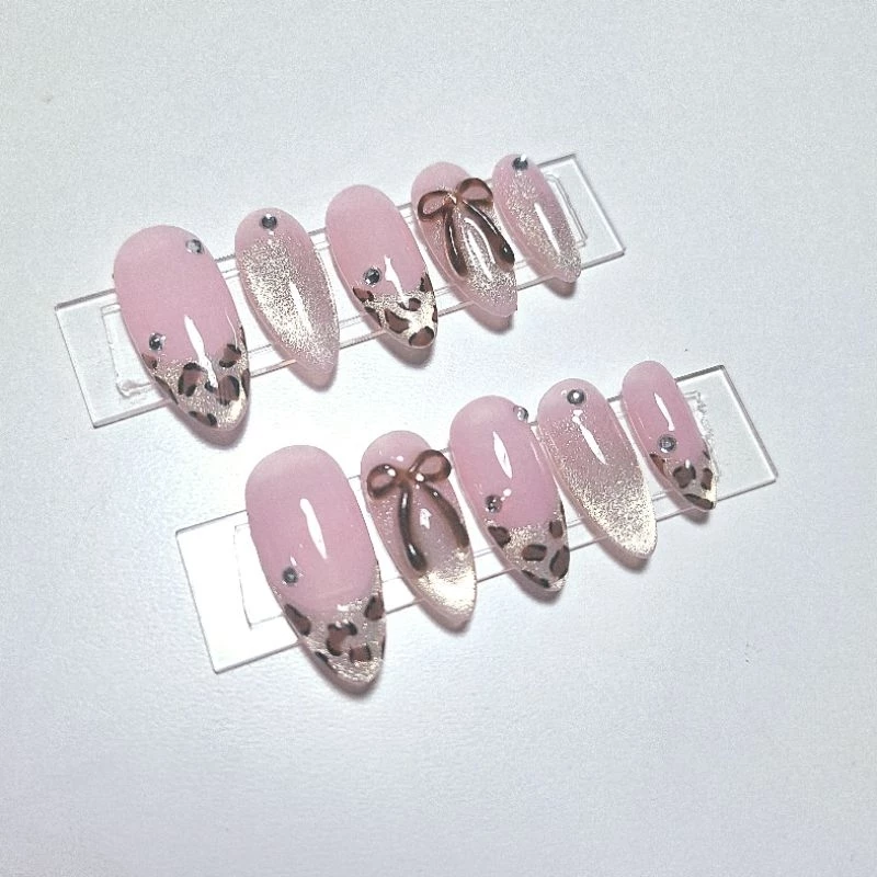 เล็บปลอม เล็บปลอมเจล สีลูกแก้วประดับโบว์ 100 ชิ้น
