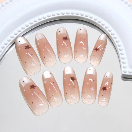 เล็บปลอมเล็บยาว สีลูกแก้วประดับรูปดาว กล่องละ 100 ชิ้น